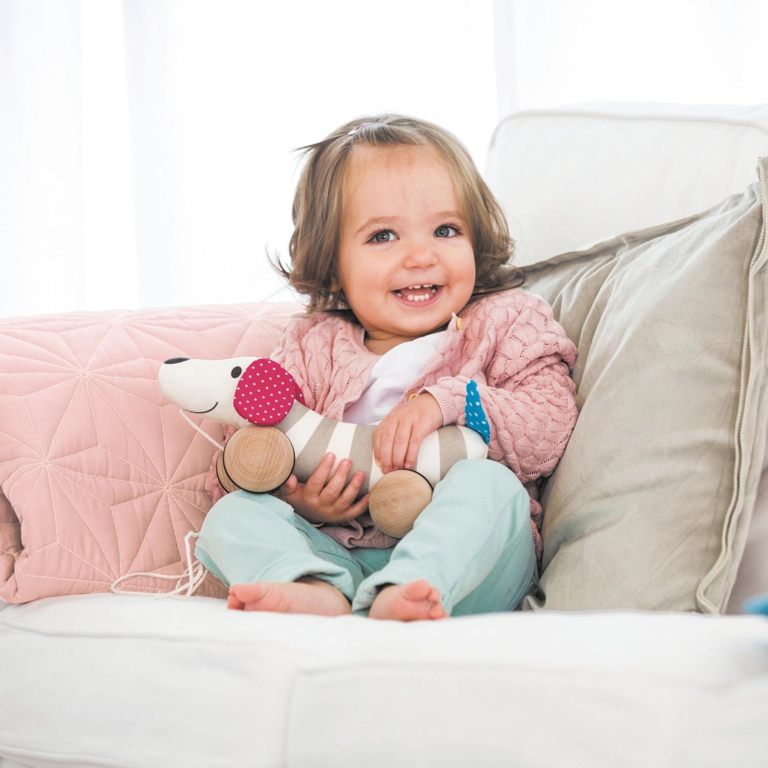 كلب Hape للجر والدفع هو الرفيق المثالي لطفلك الصغير لأخذه في جولات أو احتضانه. هذا الكلب اللطيف المصنوع من القماش الناعم يجلس على عجلات خشبية ملساء بحواف مطاطية تحمي أرضياتك من الخدوش. عندما ينتهي وقت اللعب، ببساطة قم بإزالة العجلات ويمكن لطفلك احتضان صديقه الفروي الجديد. آذان الكلب المرحة والمتدلية قابلة للدوران، مما يضيف لمسة مرحة إلى لعبهم التخيلي. هذه اللعبة تشجع مهارات لعب الأدوار وتساعد على تعزيز حب الحيوانات مع دعم التطور البدني ومهارات المشي المبكرة. مناسب للأطفال بعمر 12 شهراً فما فوق.