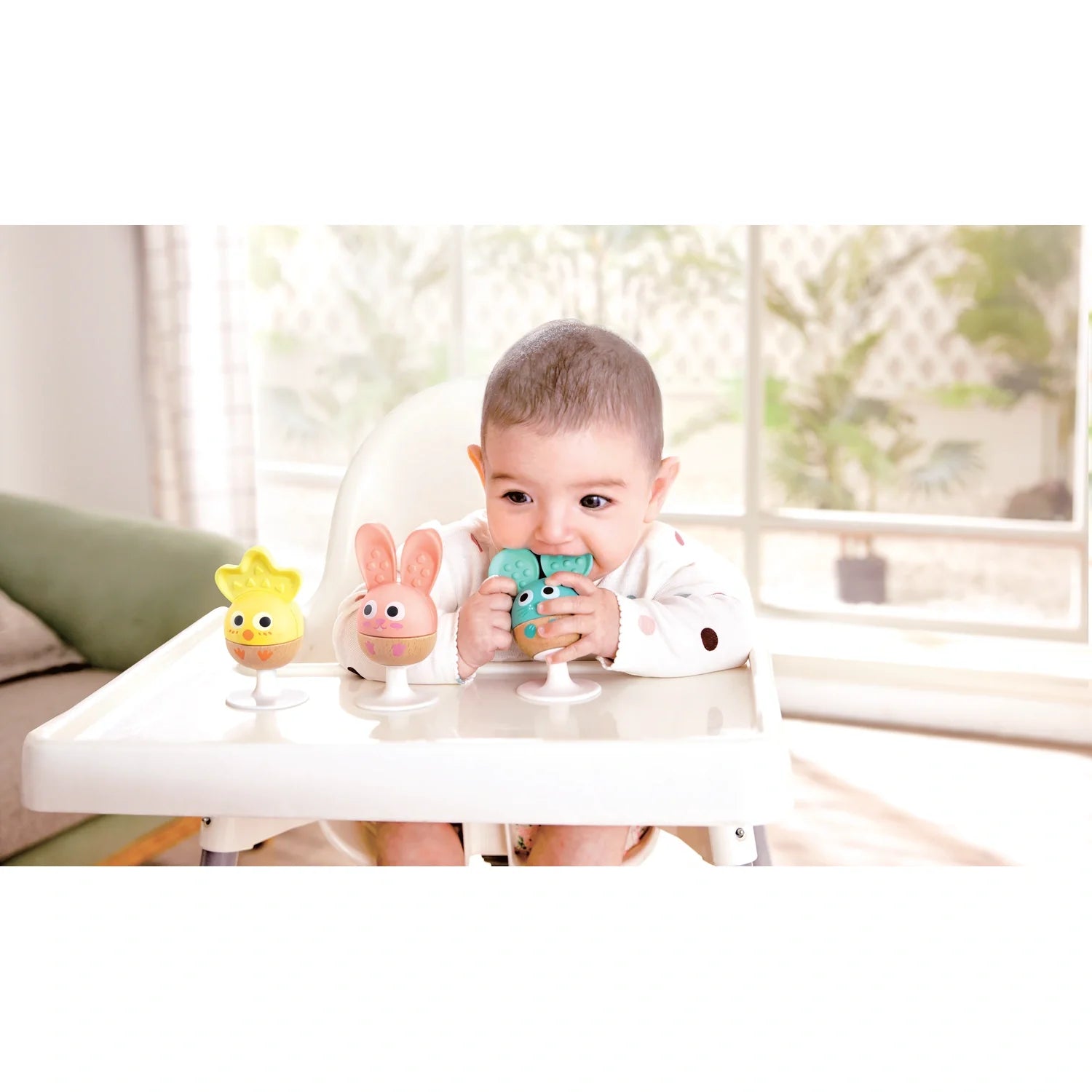 العب في أي مكان: كل خشخيشة تأتي مع كوب شفط يُثبت بإحكام على الأسطح الملساء، يوفر ترفيهاً ممتازاً أثناء التنقل، سواء على كرسي مرتفع، طاولة، أو أسطح ملساء أخرى.