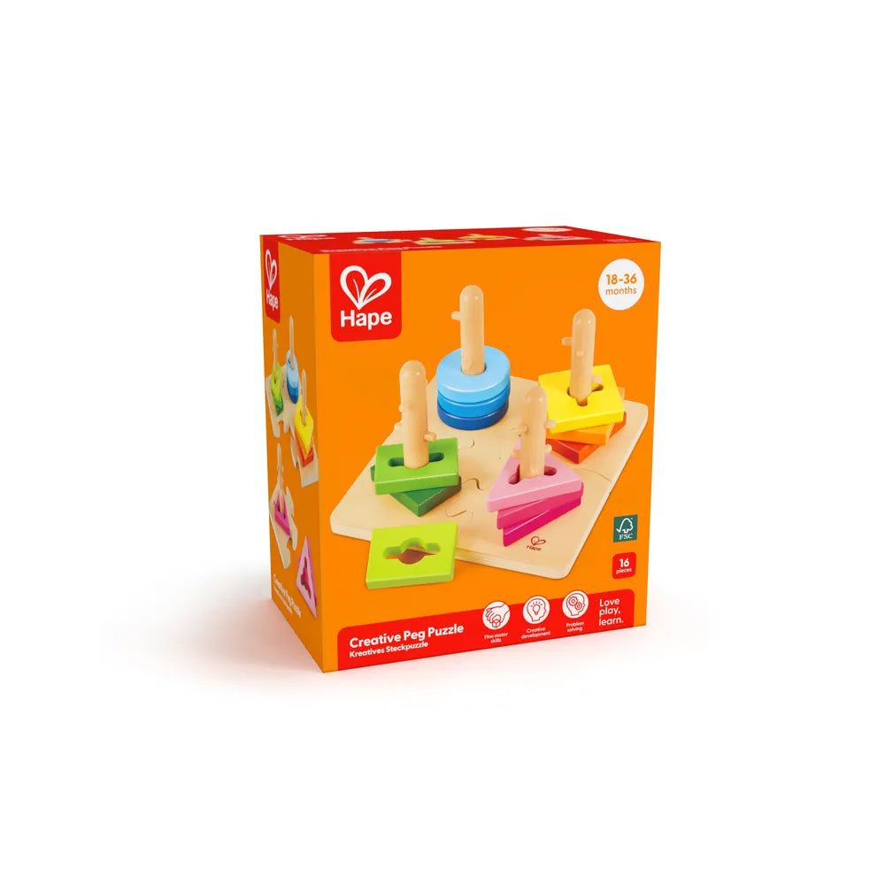Take your toddler's play beyond simple stacking with the Hape Creative Peg Puzzle. This isn't just a puzzle; it's a foundation for early logic and fine motor skill development. Featuring 16 vibrant pieces and pegged posts, children must use problem-solving skills to match the grooved shapes onto the correct posts.