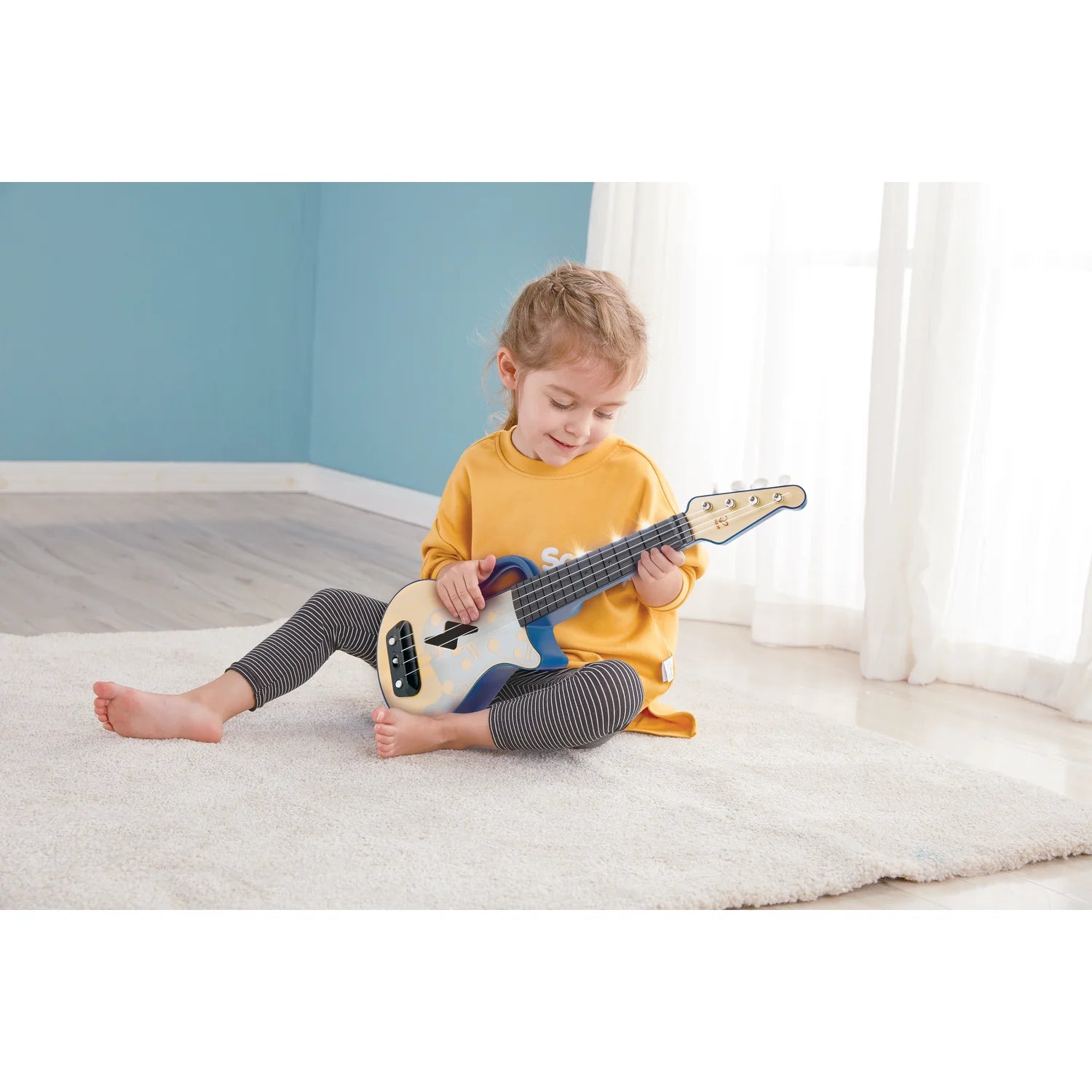 يوكيليلي Hape يتعلم مع أضواء هو الرفيق الموسيقي المثالي لنجم الروك الصغير الخاص بك. مصمم لتعليم الأطفال تقنيات موسيقية أساسية، يوكيليلي القابل للضبط هذا يأتي مع أضواء توجيهية على لوحة العنق لمساعدة الأطفال على المتابعة والعزف على الألحان بوتيرتهم الخاصة. يمكن للأطفال إتقان ستة ألحان مختلفة باستخدام وضع التعلم، وعندما يكونون جاهزين، التحول إلى وضع الفرقة للعب أسرع مع المصاحبات. يوكيليلي هذا يتضمن ملصقات نوتات موسيقية مرمّزة بالألوان وكتاب موسيقى لجعل التعلم أكثر متعة وجاذبية. خفيف الوزن بمقبض مدمج، سهل على الأطفال حمله واللعب به في أي مكان. أوتار النايلون يمكن ضبطها مثل يوكيليلي حقيقي، مما يجعل هذه اللعبة تعليمية وترفيهية في آن واحد. إنها المقدمة المثالية للموسيقى للأطفال بعمر ثلاث سنوات فما فوق.