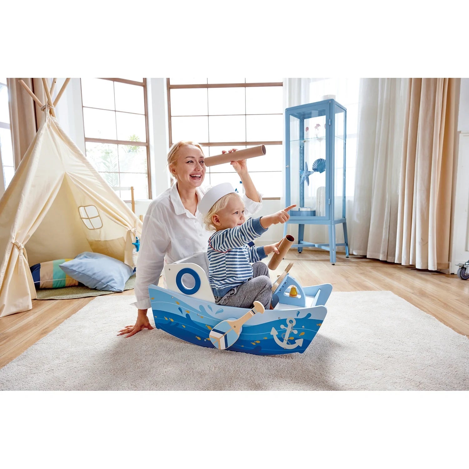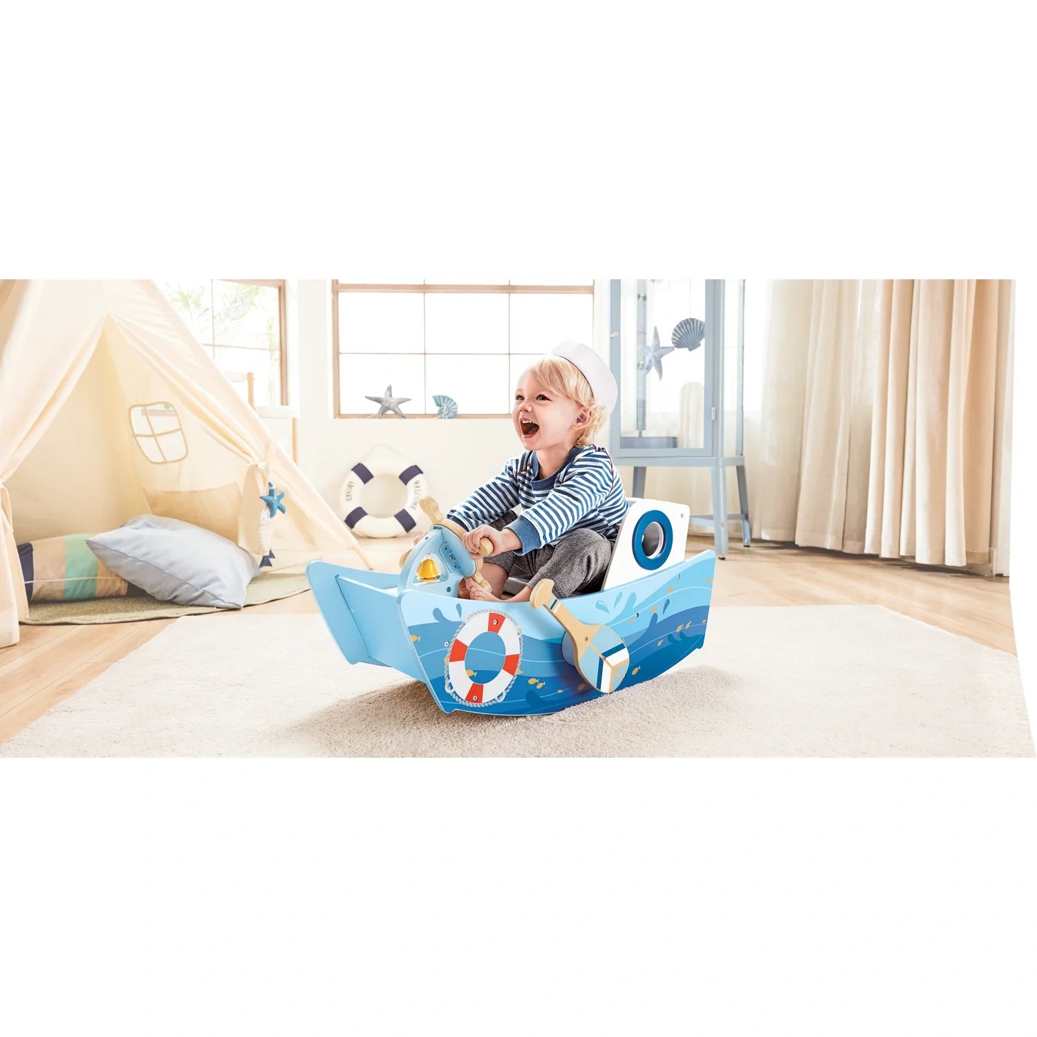 ما هي الفئة العمرية المناسبة لقارب Hape Captain's Rocking Boat؟